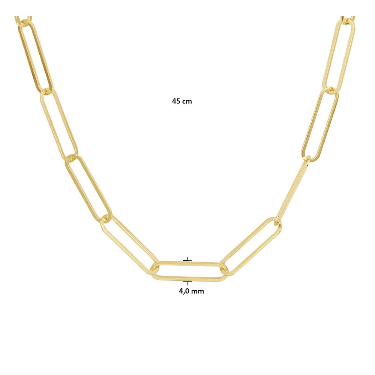 14k Geelgouden anker collier met een schakelbreedte van 4mm en uitgevoerd met een stevige karabijn sluiting. Het collier heeft een draaglengte van 45.5cm.