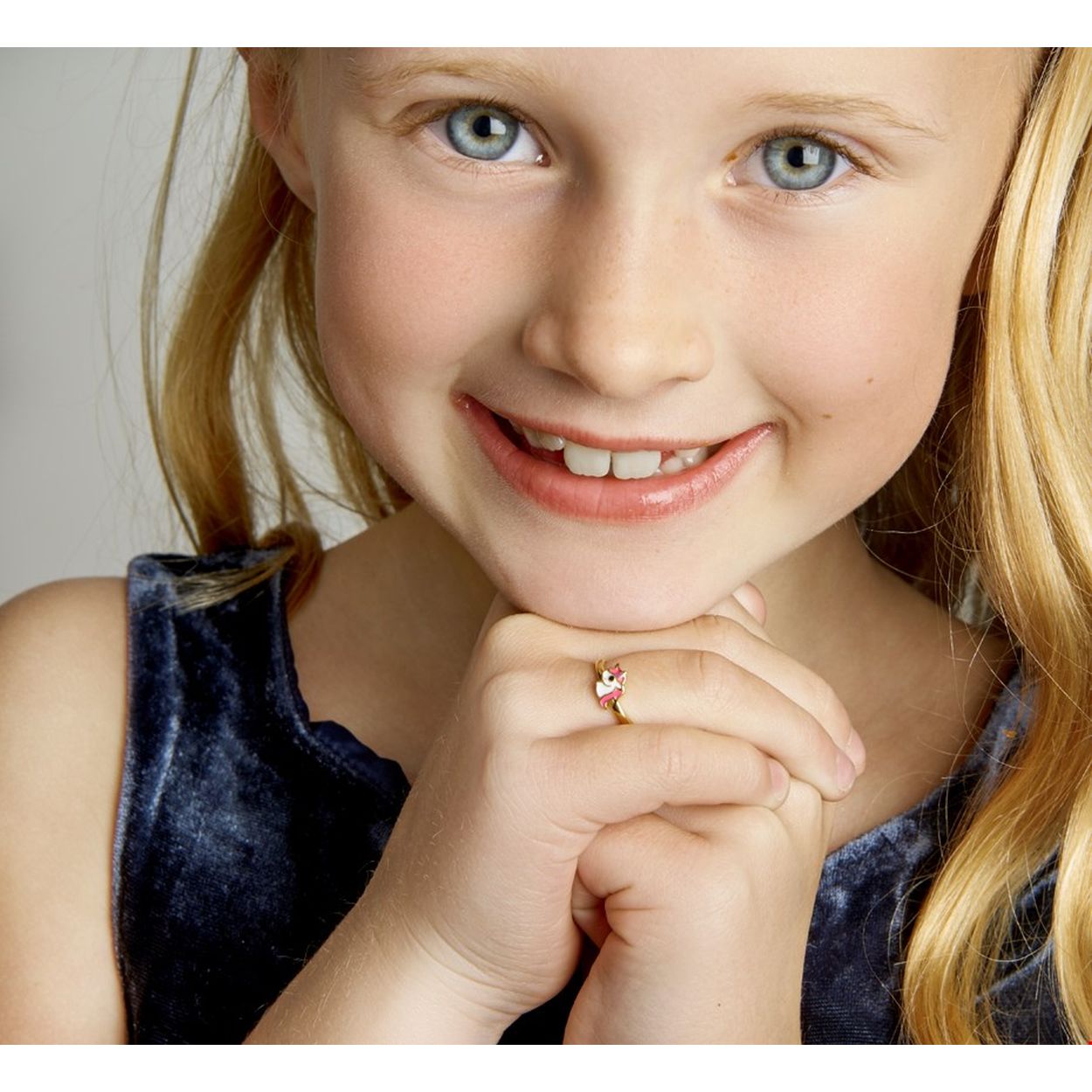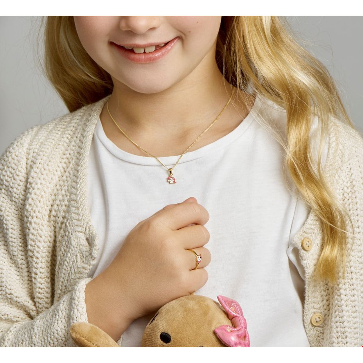 Beschrijving: Schattige geelgouden fantasie eenhoorn ring met een breedte van 6.5mm. Deze ring is perfect te combineren met bijpassende sieraden uit onze collectie. Tip: Leuk om kado te geven. Zie je ze al stralen?