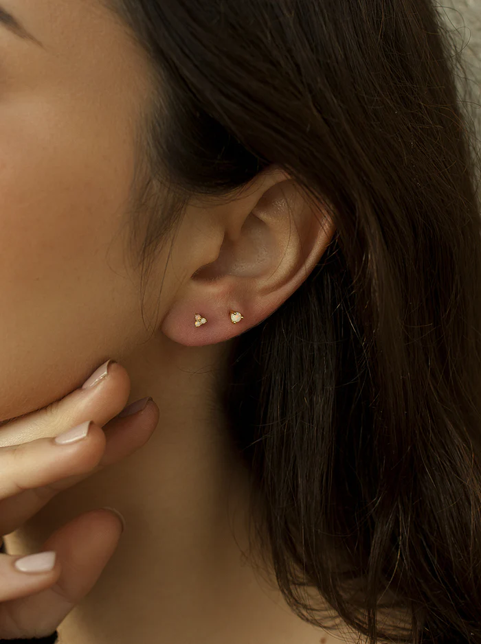 Verguld sterling zilveren piercing met een ronde opaalsteen. Een minimalistisch en verfijnd ontwerp dat een unieke glans toevoegt en je look elegant versterkt.