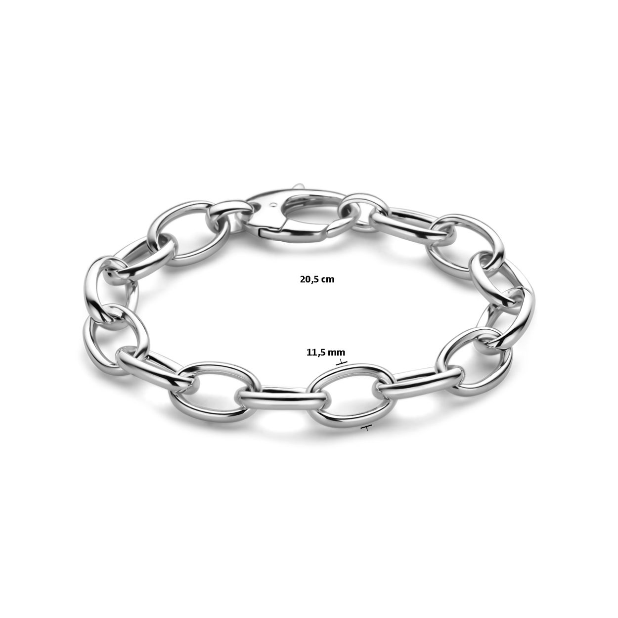 925 Zilveren armband met draaglengte van 20.5cm. De schakelbreedte is 11.5mm. Uitgevoerd met een karabijnsluiting.