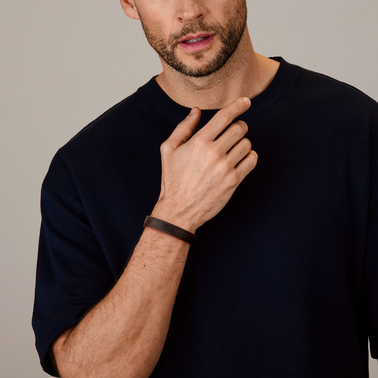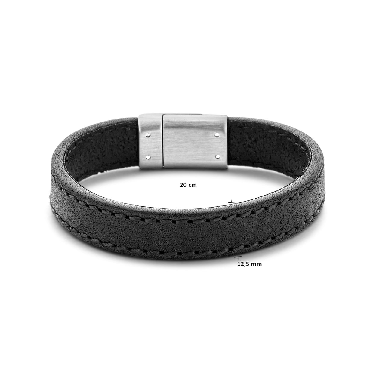 Zwart leren armband uitgevoerd met een stalen magneetsluiting. De armband heeft een breedte van 12.5mm.