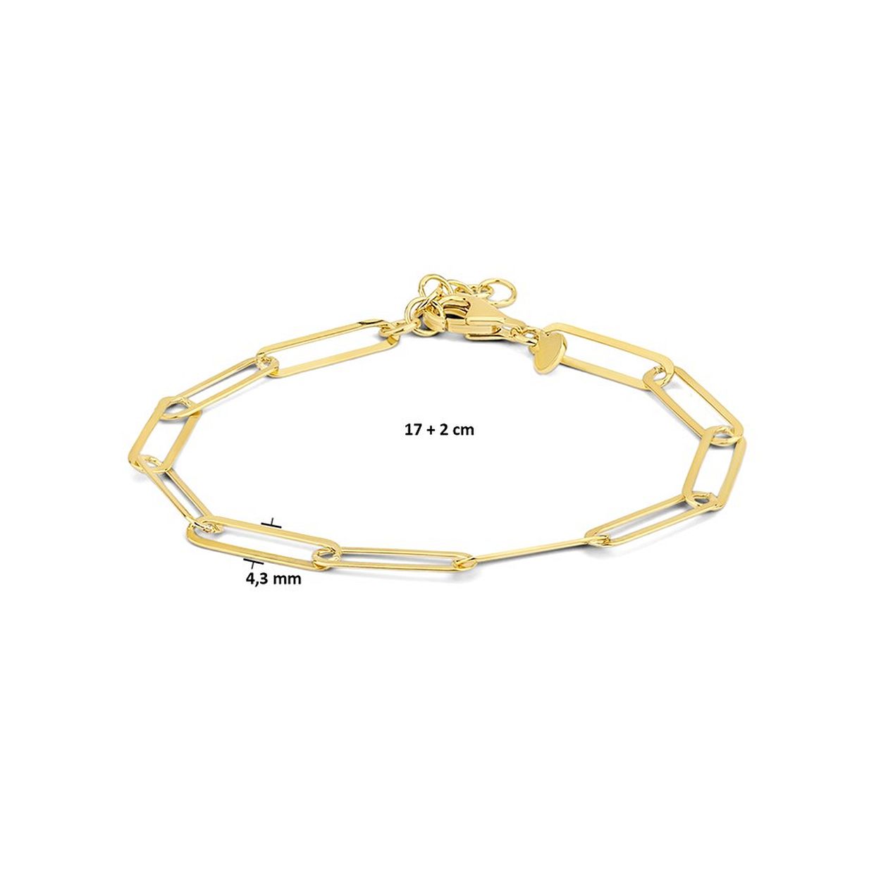 Geelgoud op 925 zilveren paperclip armband met een breedte van 4.3mm. De armband heeft een draaglengte van 17cm met een extensie van 2cm en een stevige karabijn sluiting.