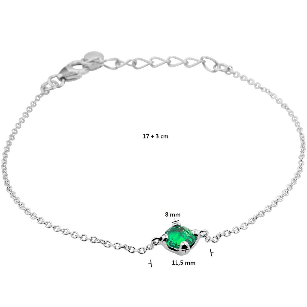 Gerhodineerd 925 zilveren armband uitgevoerd met een schitterende synth. smaragd en een stevige karabijn sluiting. De armband heeft een draaglengte van 17cm met een extensie van 3cm.