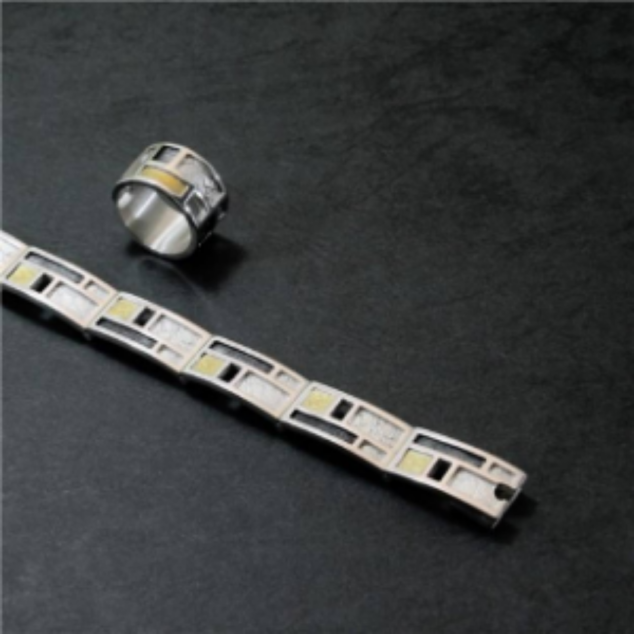 925 white silver ring combined with oxidized silver and 18k yellow gold.