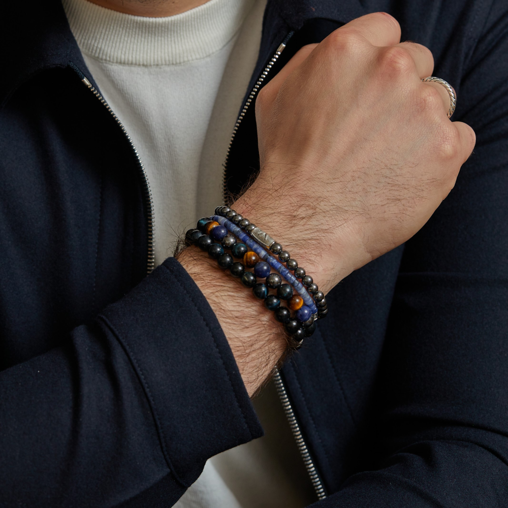 Rebel & Rose Armband The Blue Rain Vintage, Lapis , Tijgeroog Hematiet en Onyx
