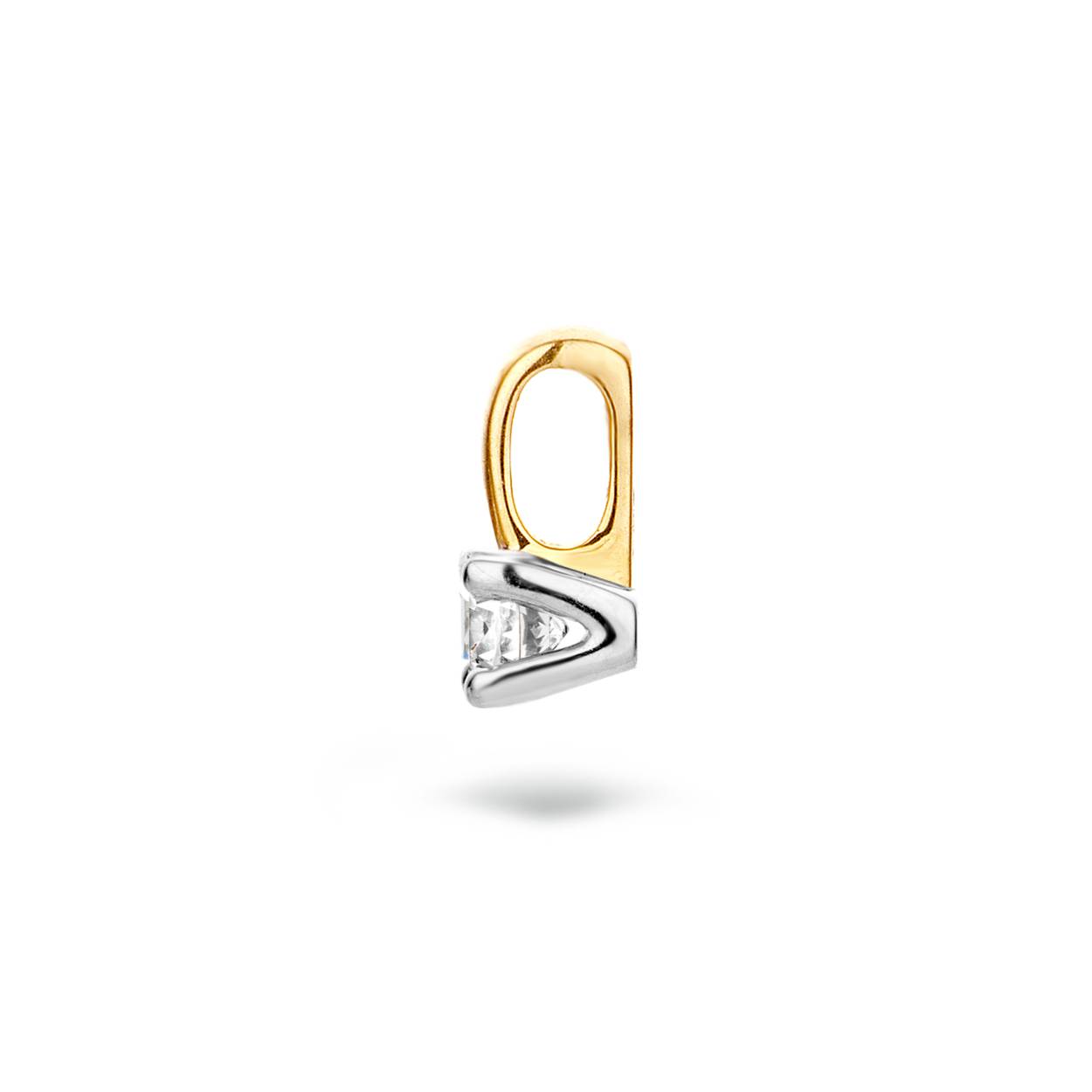 Deze hanger van 14k geelgoud schittert met een briljant geslepen diamanten in chaton-zetting. De doorsnee van de hanger is 2.9 mm en de diamant heeft een karaatgewicht van 0,05. Een prachtig sieraad dat mooi matcht met andere sieraden uit onze collectie.