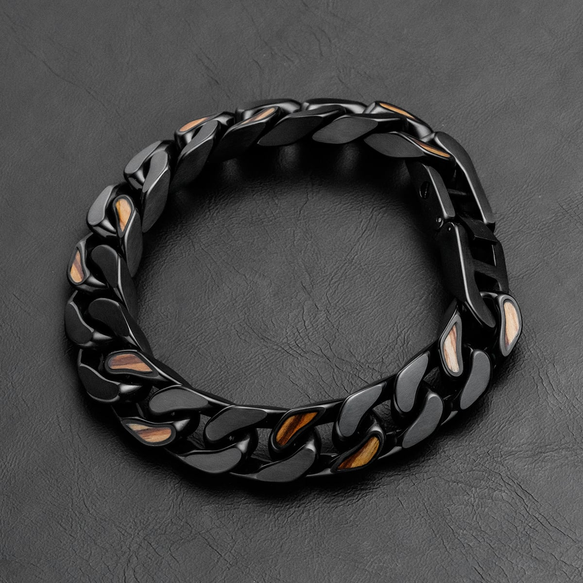 Opvallende roestvrijstalen schakels vormen de basis van deze armband en draperen een koele, glanzende afwerking rond je pols. Op regelmatige afstanden zorgen subtiele accenten van echt zebrahout voor een natuurlijke textuur, kleur en karakter, terwijl het geheel perfect waterbestendig is dankzij onze innovatieve Hydro-Defense coating.