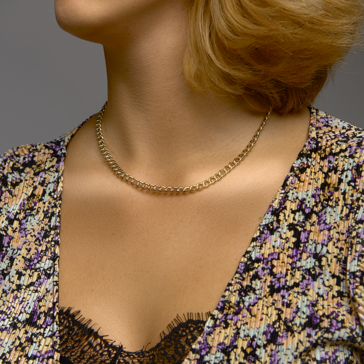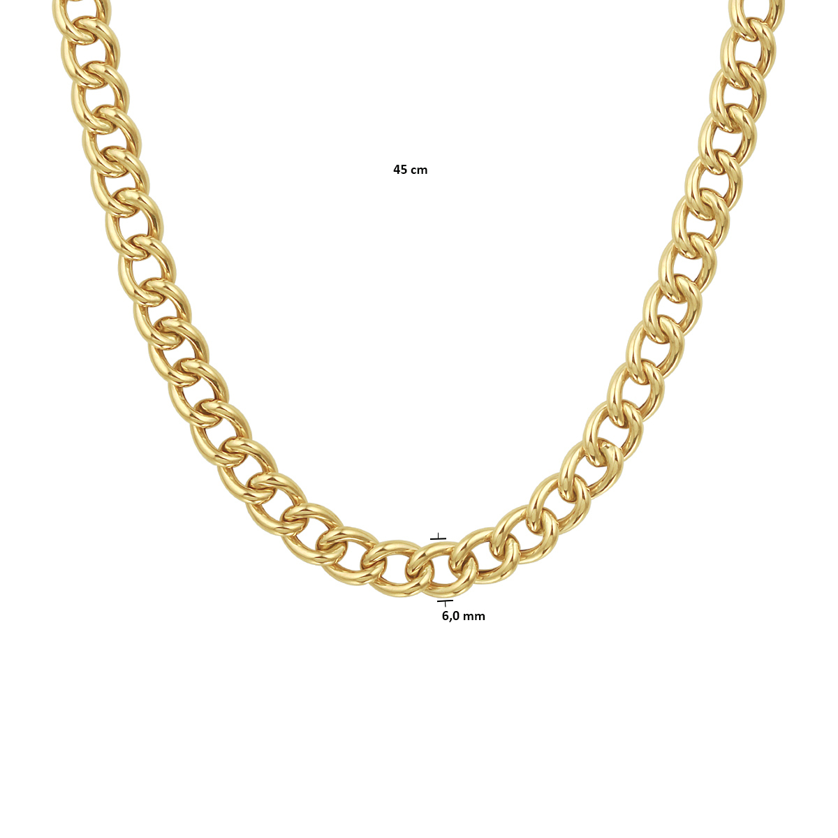 14k Geelgouden gourmet collier met een schakelbreedte van 6mm. Het collier heeft een draaglengte van 45cm en is uitgevoerd met een groot springslot.
