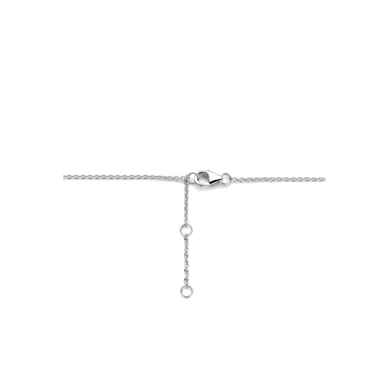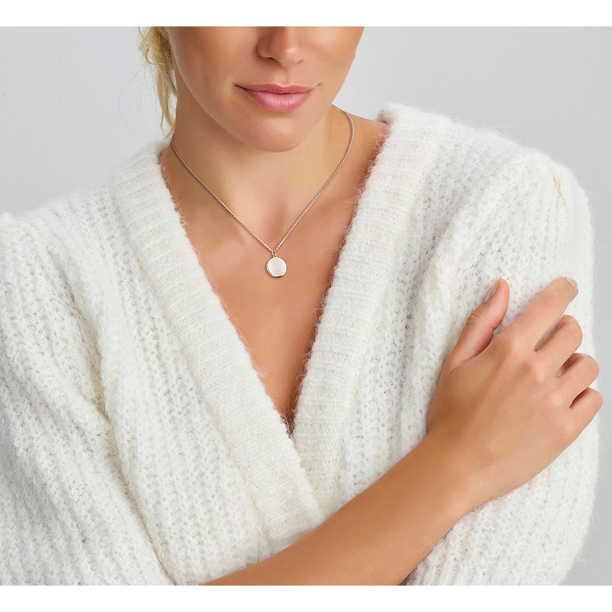 Gerhodineerd 925 zilveren collier uitgevoerd met een ovale hanger. Het collier heeft draaglengtes van 40, 42 en 44cm. De hanger heeft een afmeting van 15x13mm.