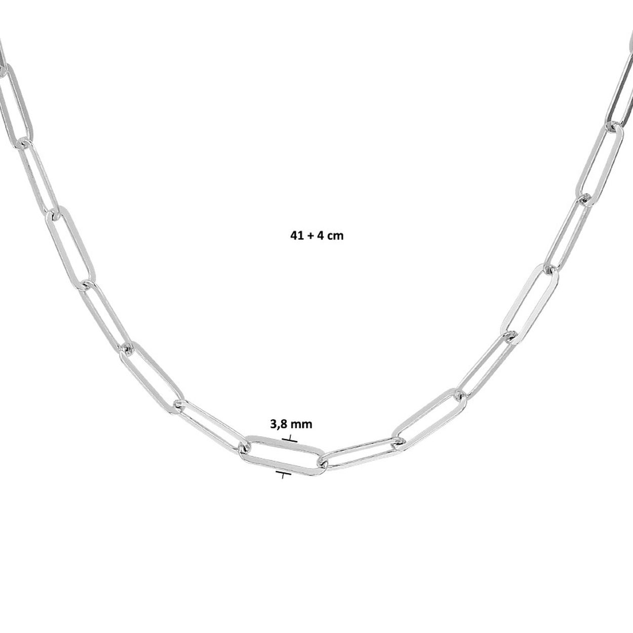 Gerhodineerd 925 zilveren collier uitgevoerd met een stevige karabijn sluiting. Het collier heeft een draaglengte van 41cm met een extensie van 4cm en een schakelbreedte van 3.8mm.