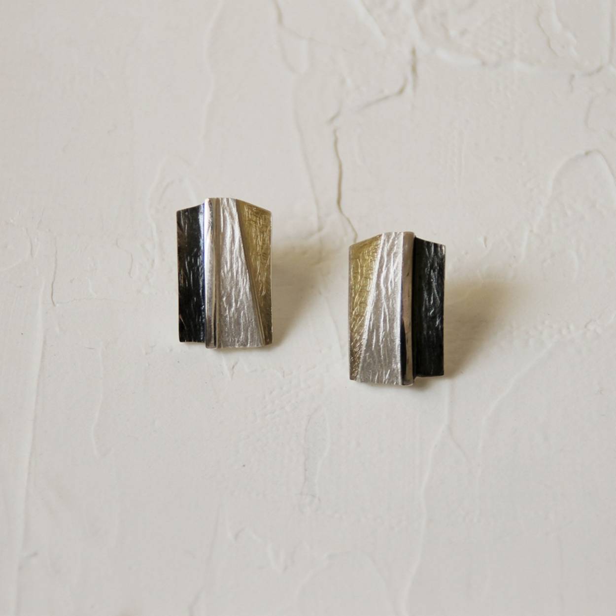 White 925 silver earrings combined with oxidized silver and 18k yellow gold.