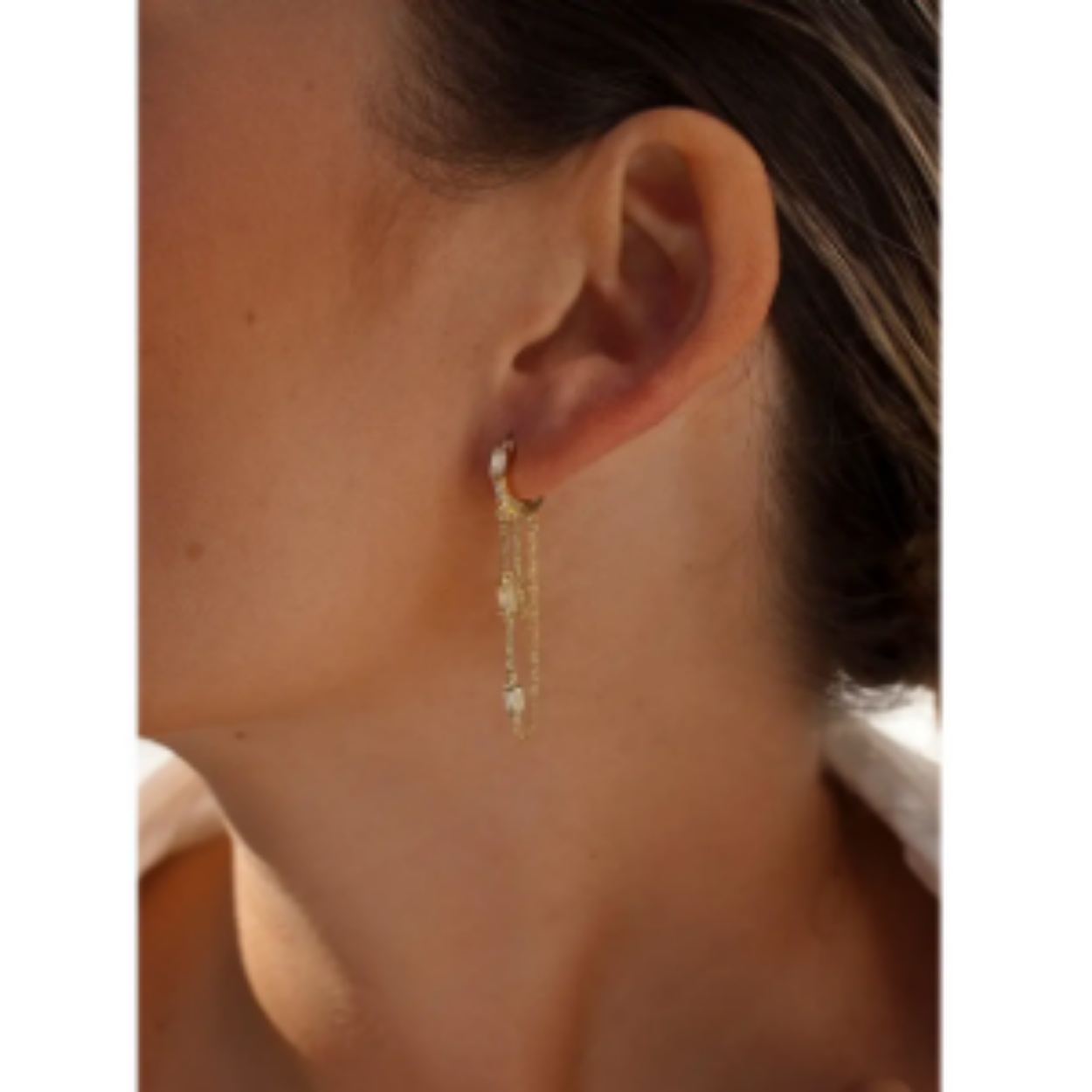 Earrings with silver pendants for women. A daring and trendy design that can not miss in the jewellery box of a woman like you. Gold plated silver pendant earrings with chain design with white zirconia details.