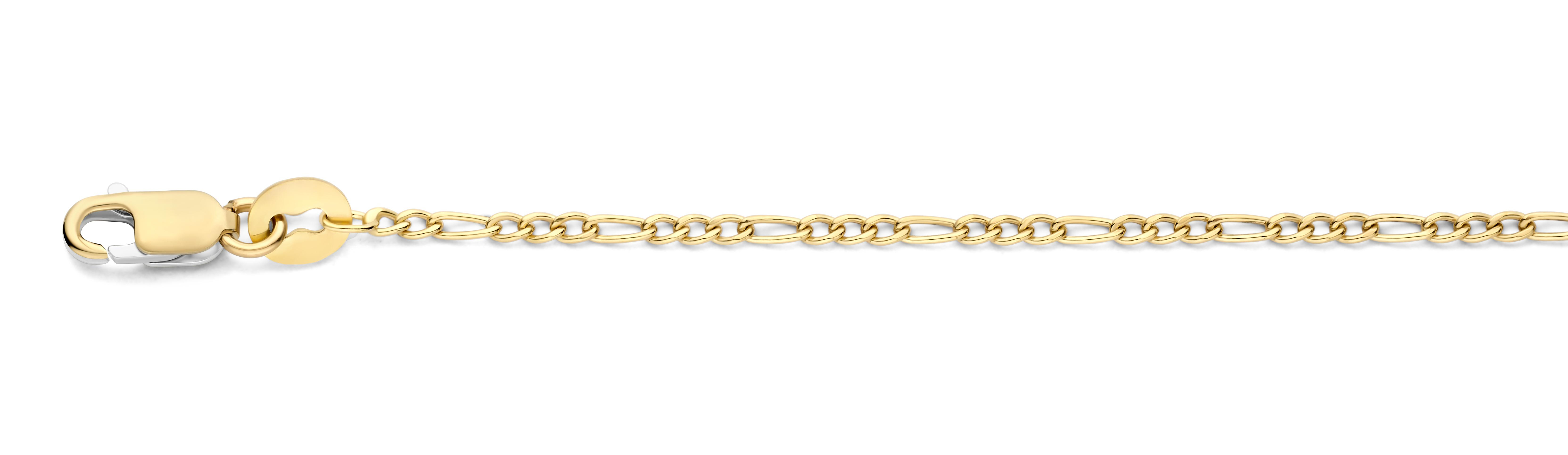 Fjory figaro schakel collier. Goud met zilveren kern. De lengte van het collier is  42 cm.
