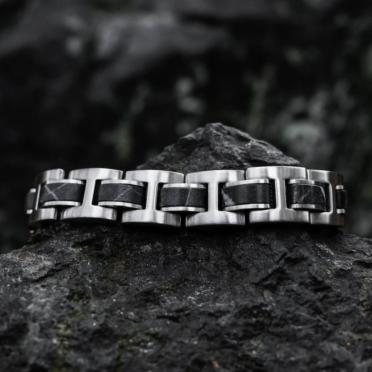 Crafted from exceptional marble and high-quality silver stainless steel, this is a Bandlet with an incredible combination of striking colors and refined design, meant to captivate. With the Fortissimo Bandlet from Holzkern, you'll make a stylish statement without much effort.