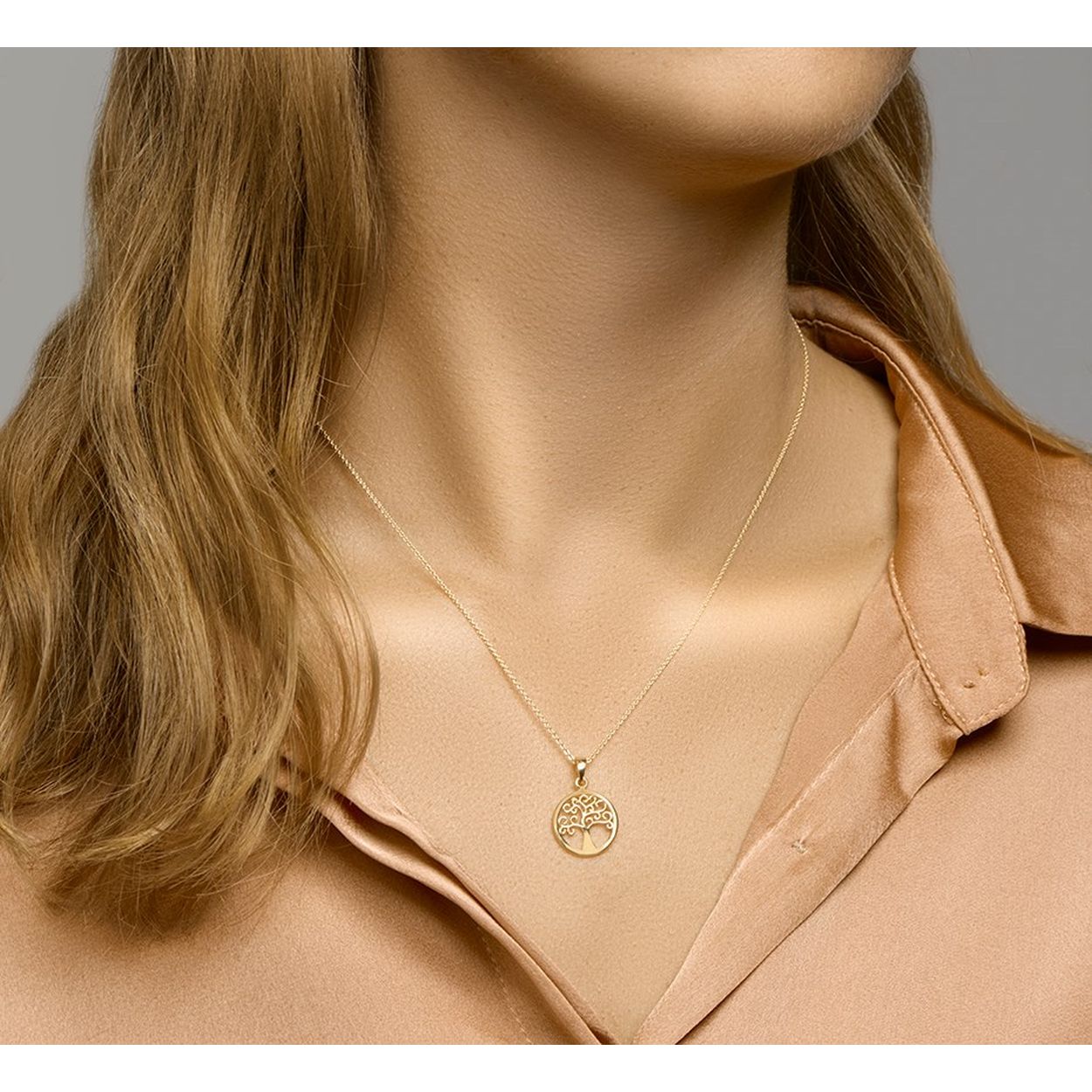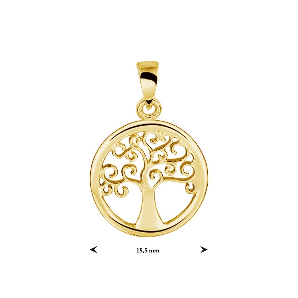 Geelgoud op 925 zilveren levensboom hanger met een diameter van 15.5mm.