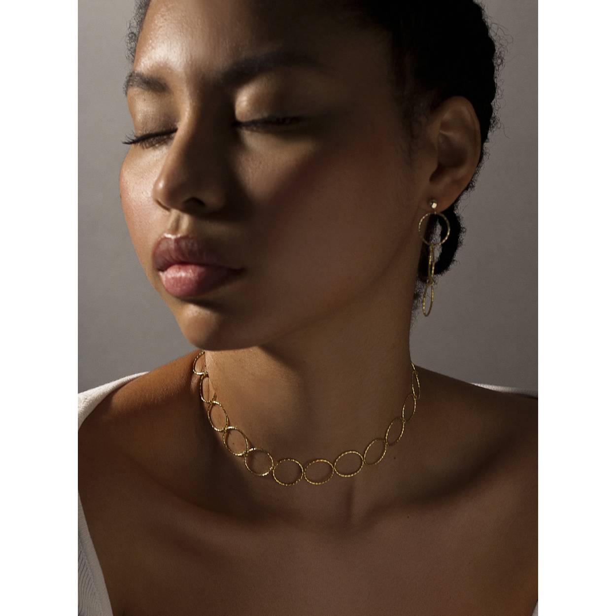 Long gold plated silver earrings with boho style hoops design. The trendiest accessory to give a boho-chic touch to your outfits. Long gold plated silver earrings made up of three rough circles. Ideal to combine with the matching necklace and bracelet that you can wear in any occasion, you will fall in love!