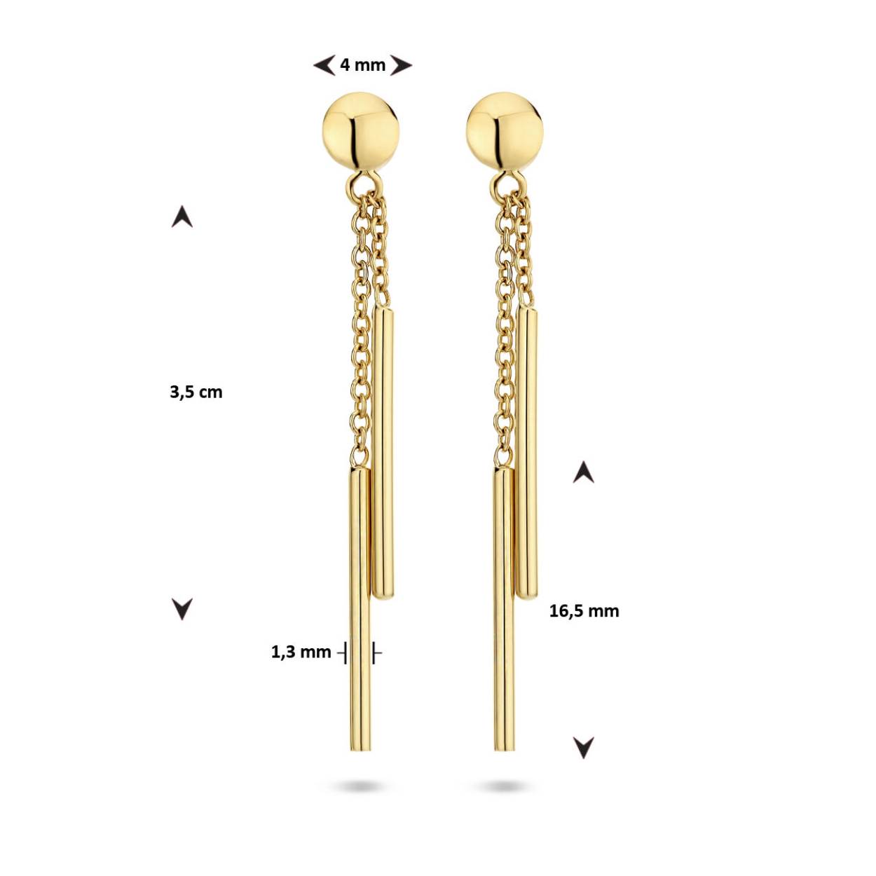 14k Geelgouden oorhangers uitgevoerd met twee staafjes van 16.5x1.3mm. De oorhangers hebben een totale hoogte van 35mm
