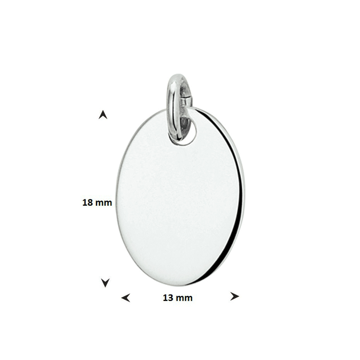 Gerhodineerd zilveren ovale graveerhanger uitgevoerd met een stevig hangoog. De hanger heeft een dikte van 1mm.