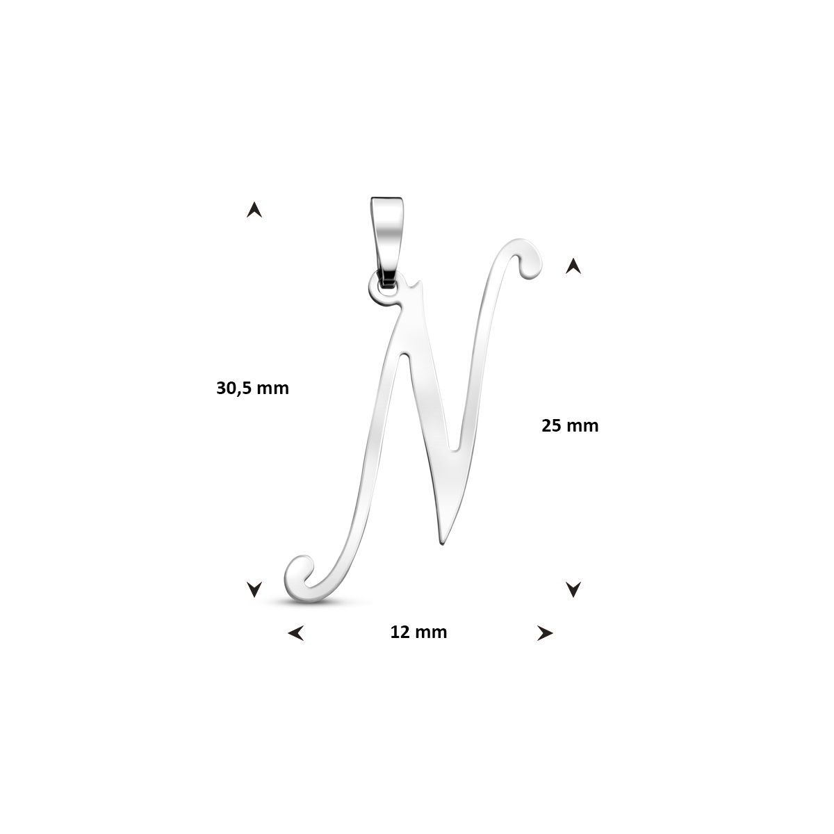 Gerhodineerd 925 zilveren hanger in de vorm van een letter.