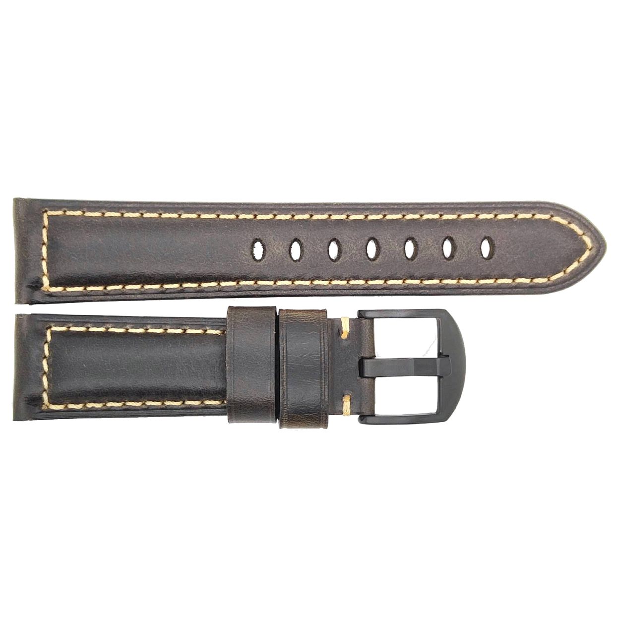 Hoge kwaliteit bovenste grain lederen horlogeband. Echte Italiaanse kalf-leatherskin horlogeband. Zachte voering en zware opvulling, maar toch extreem flexibel. Uitgerust met een roestvrij staal, PVD zwarte gesp.