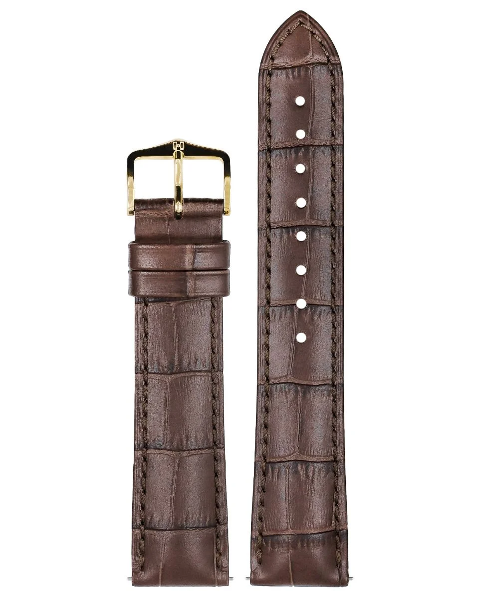 Subtiel, maar toch buitengewoon: dat is DUKE, een leren horlogeband gemaakt van het fijnste Italiaanse kalfsleer. Dankzij de speciale krokodillennerfstructuur heeft deze band een werkelijk unieke uitstraling. Andere bijzondere kenmerken zijn de halfmatte afwerking, de fijne, ton-sur-ton stiknaad en de opvallende reliëflijn op de band en de bevestigingsringen.