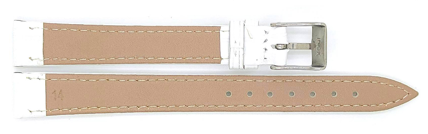 Extra lange alligator print kalfsleren  horlogeband, mat. Met degelijke kast en gesp bevestiging, gestikte passant en roestvrij stalen gesp. Deze  horlogeband heeft zachte leer voering en is super flexible.