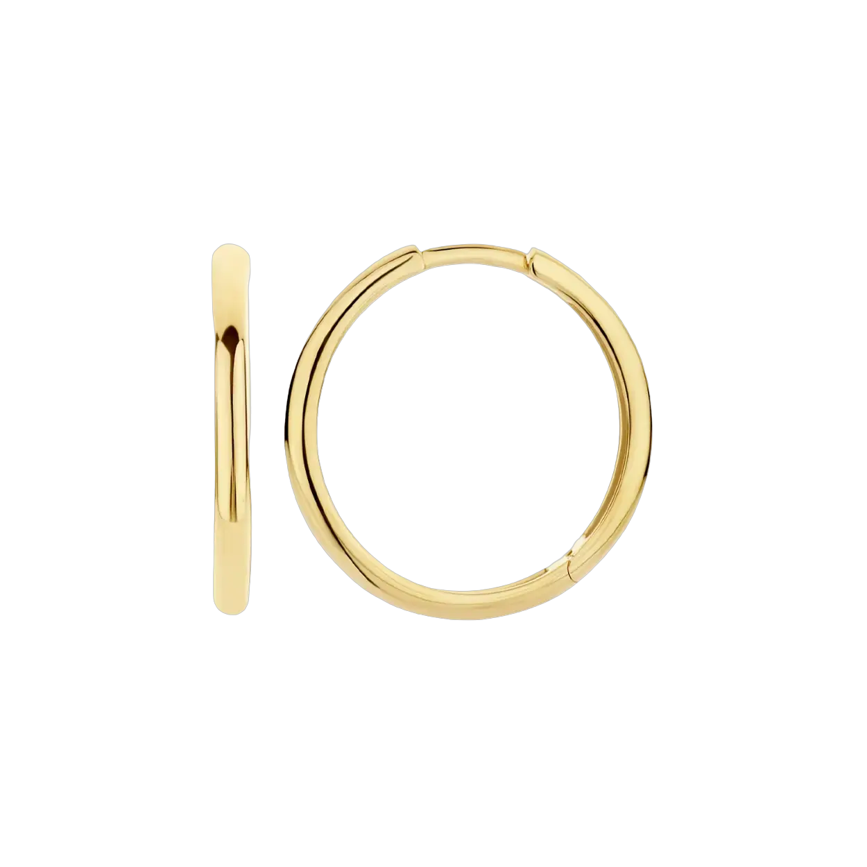Prachtig in hun eenvoud zijn deze klassieke, gladde, ronde 14k geelgouden klapoorringen. Ze hebben een doorsnede van 1.9 mm