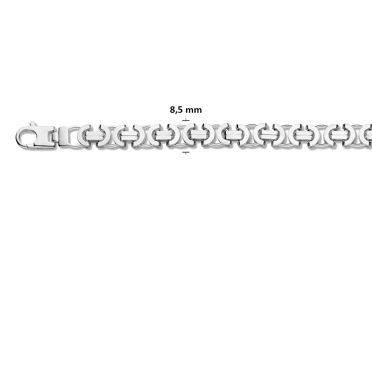 Zilveren lengte artikel met platte konings schakel. De schakelbreedte is 8.5mm.