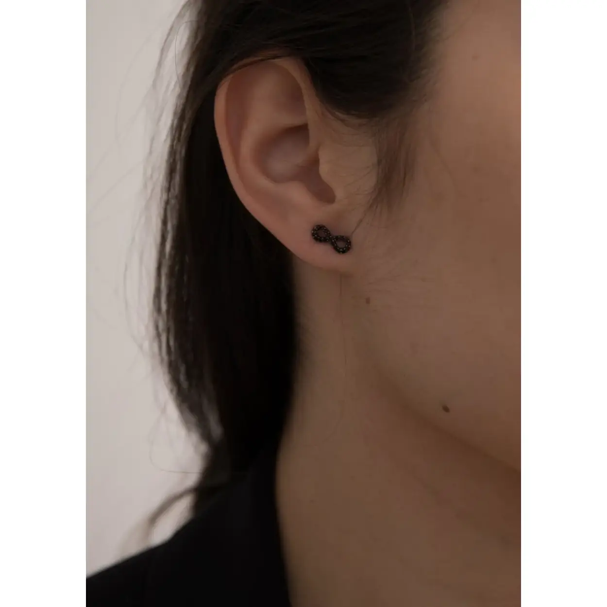 Ruthenium vergulde zilveren oorbellen met een oneindig motief bezet met een baan van zwarte zirkonia.
