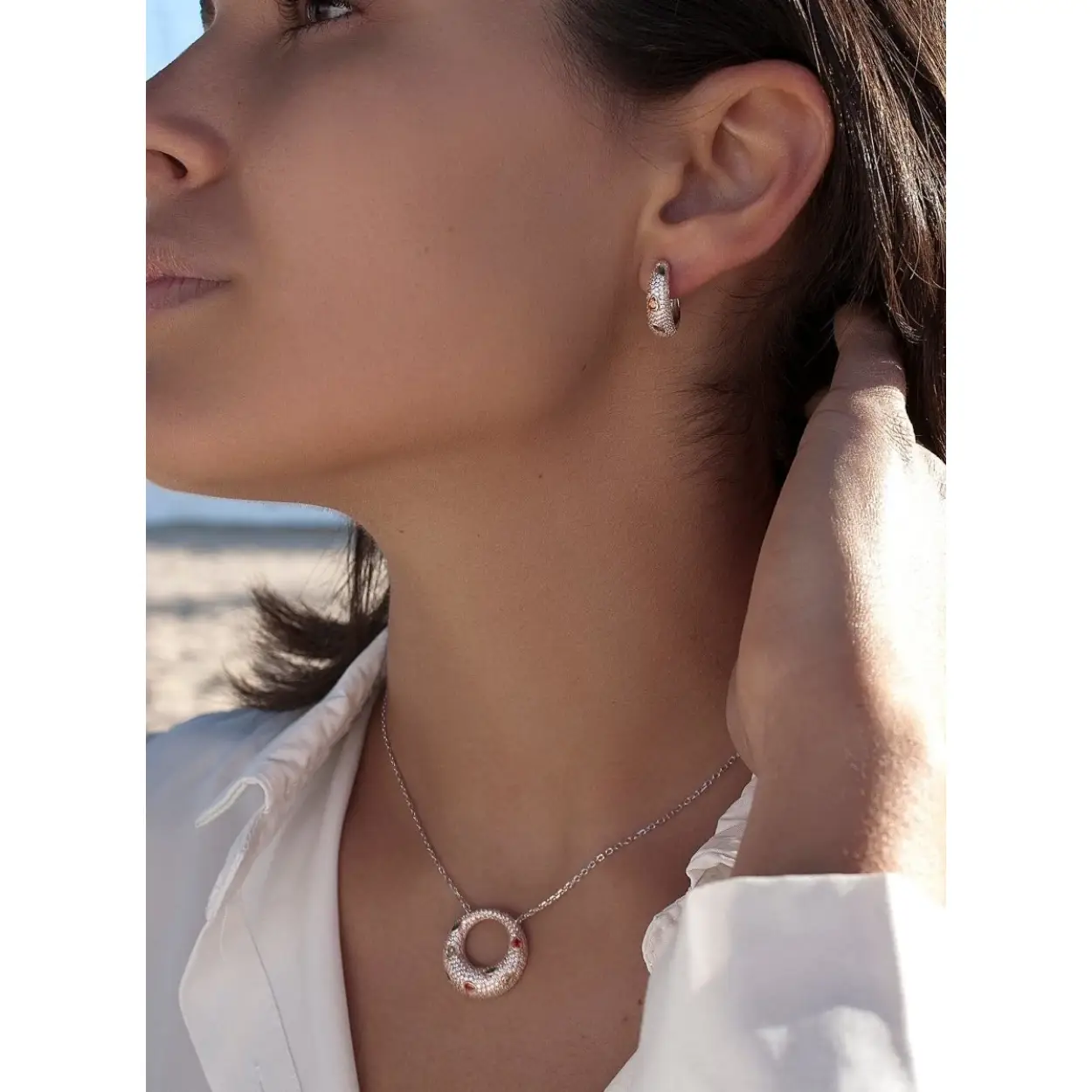 Onregelmatige ronde zilveren hanger met pavé witte zirkonia en oranje, gele en groene adamantine kwarts inleg in verschillende maten. Perfect te combineren met de bijpassende ring en oorbellen.