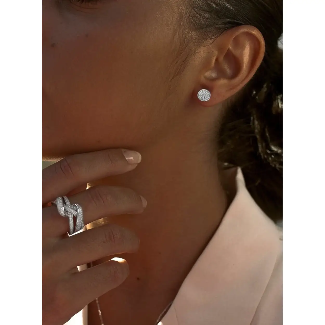 Kleine ronde gesp design oorbellen bezet met zirkonia.