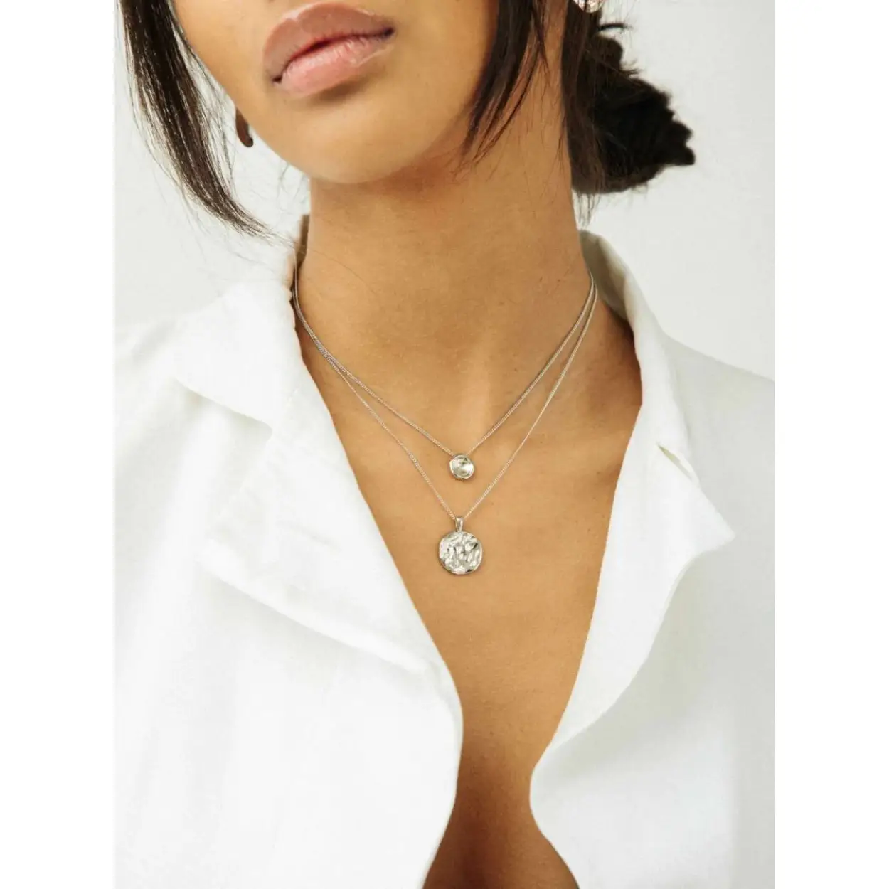 VLOEIBARE ONREGELMATIGE MET ROND MOTIEF ZILVEREN HANGER  EN COLLIER
