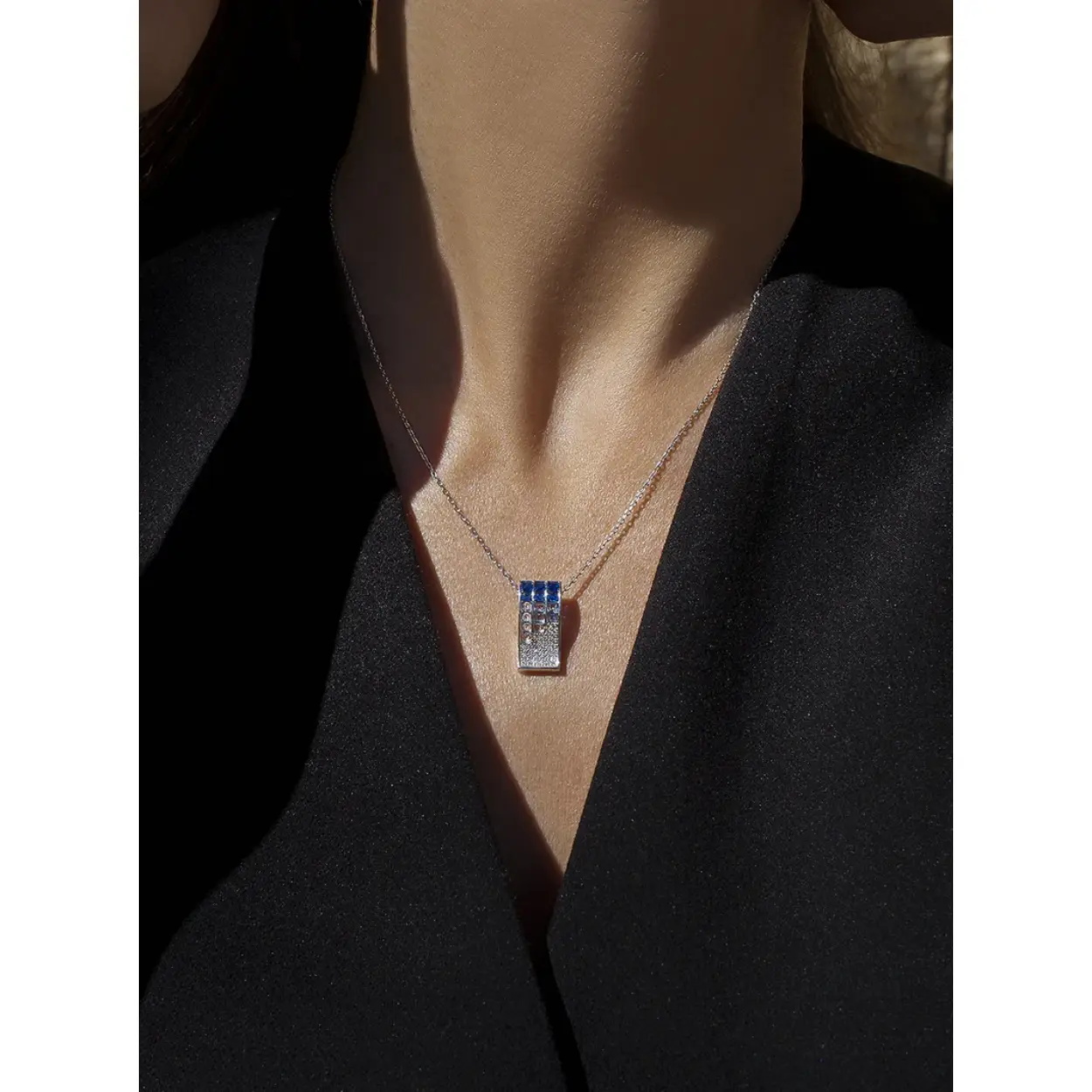 Necklaces with silver stones triple rail with gems in blue tones for women. Silver necklace made up of three rails, half of multicolored emerald-cut zirconia, in shades of azurite, chalcedony and light blue and the other half of white zirconia . Combine it with the matching earrings and ring and get a total look, you will shine!