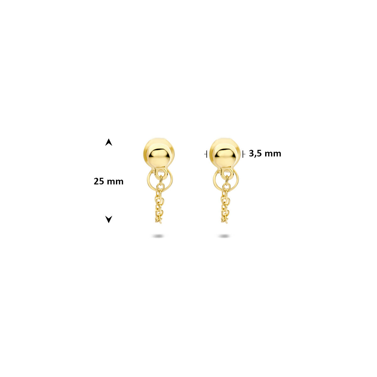 Verguld geel 925 zilveren oorbellen met een bol van 3.5mm. De oorbellen hebben een totale hoogte van 25mm. Geen garantie op plating.