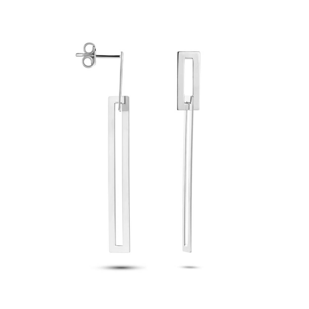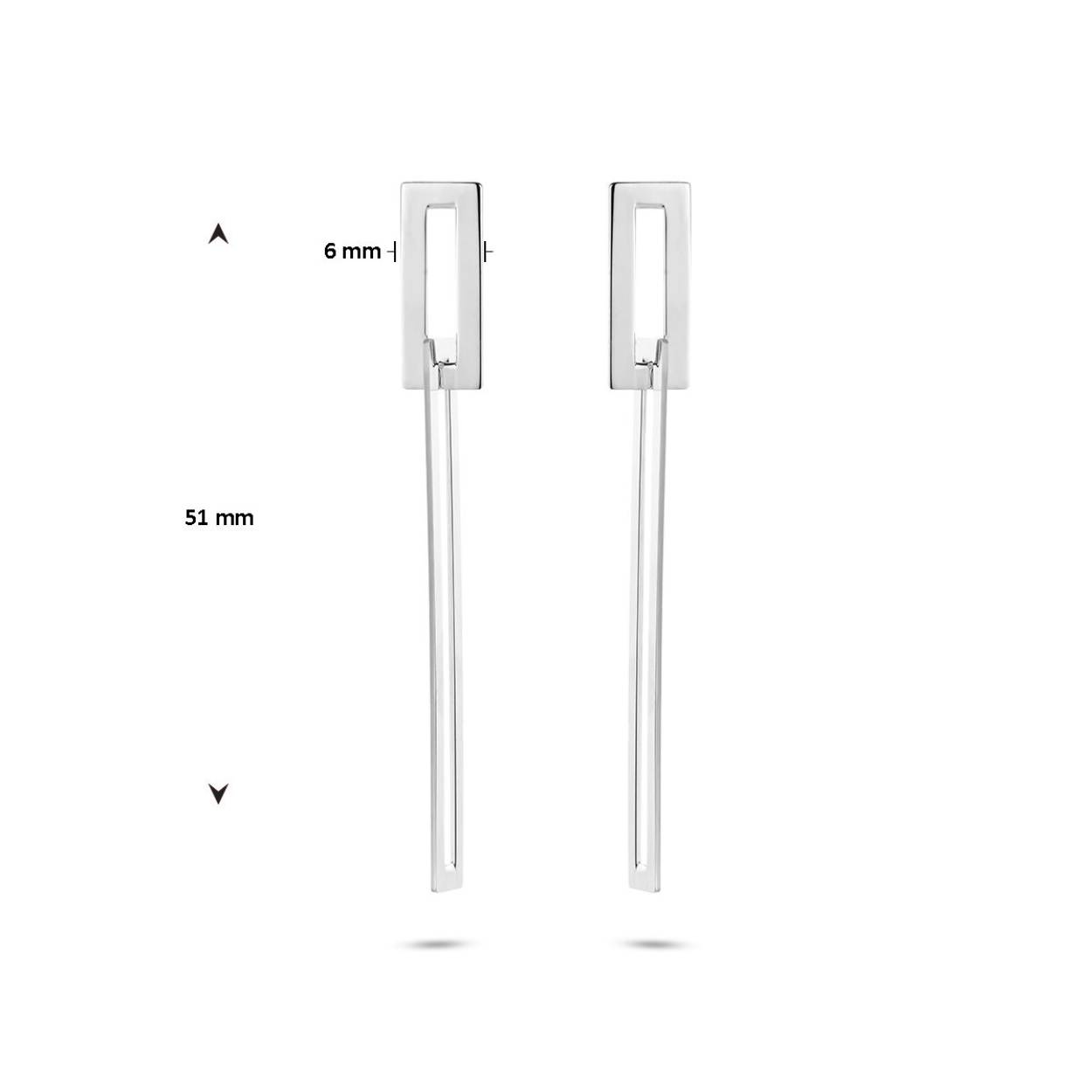 Gerhodineerd 925 zilveren oorhangers met rechthoeken en een totale hoogte van 51mm.