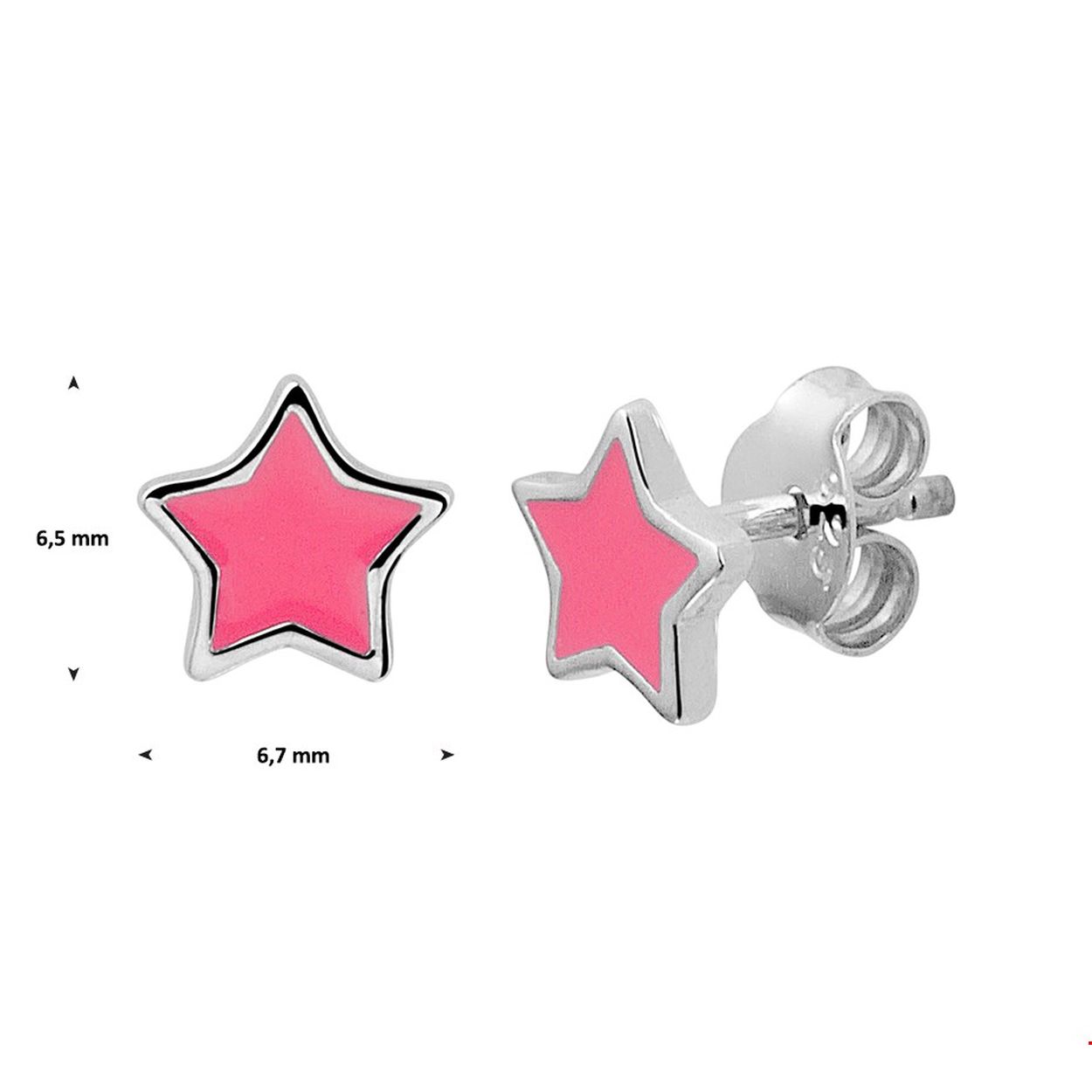 Beschrijving: Schattige gerhodineerd zilveren ster oorknoppen met een afmeting van 6.5x6.7mm. Uitgevoerd met donkerroze emaille en een stevige poussette sluiting. Deze oorknoppen zijn goed te combineren met bijpassende sieraden uit onze collectie. Tip: Leuk om kado te geven! Info: Gerhodineerd zilver is door de rhodiumlaag beter bestand tegen verkleuren en krassen.