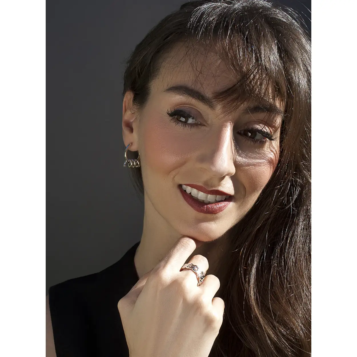 Sterling silver hoop earrings with spiral at the bottom. Hoop style earrings perfect to wear with other types of earrings and make your ear shine. Smooth silver earrings formed by a hoop and a spiral at the bottom. Ideal earrings for this season.
