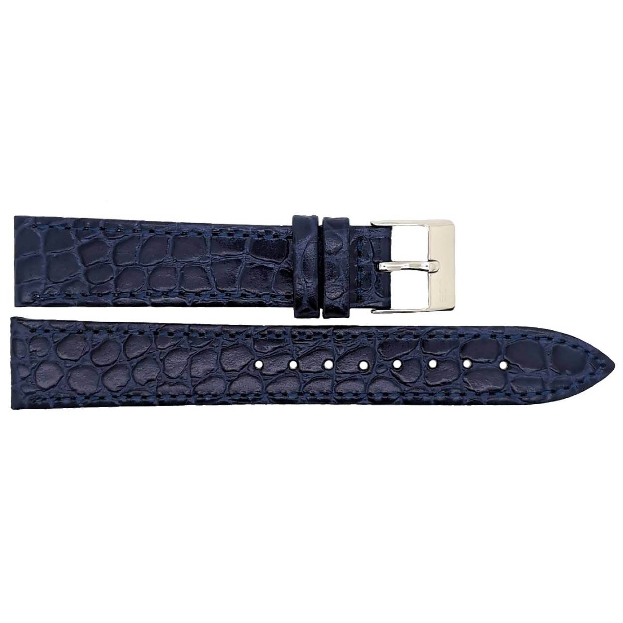 Platte kalfsleren horlogeband met krokodillenprint, mat. Met sterke kast- en gespverbinding, gestikte lus en roestvrijstalen gesp. Deze horlogeband heeft een zachte leren voering.