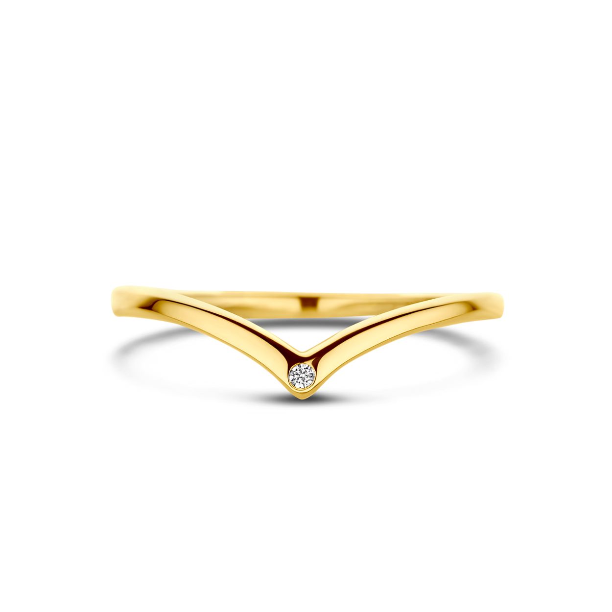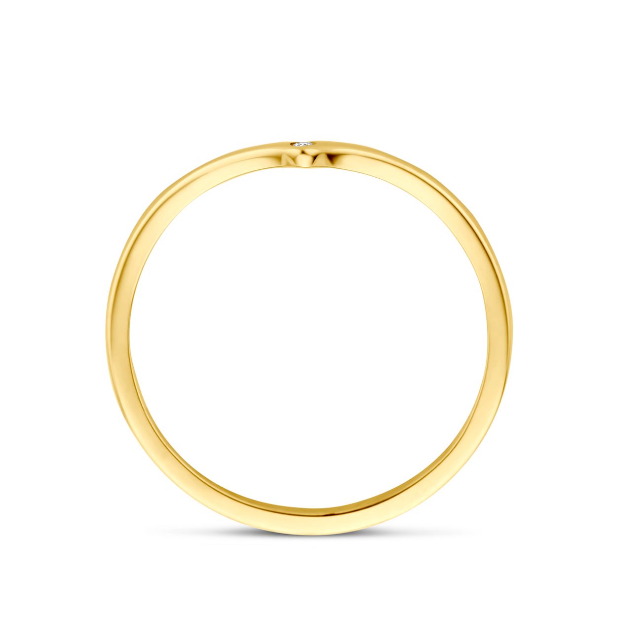 14k Geelgouden ring uitgevoerd met zirkonia. De ring heeft een breedte van 1.5mm.