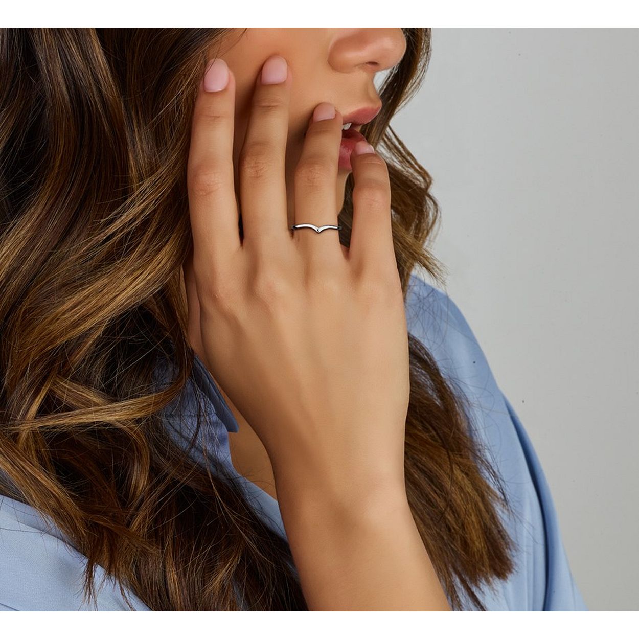 Gerhodineerd 925 zilveren ring uitgevoerd in V-vorm. De ring heeft een breedte van 4.5mm.