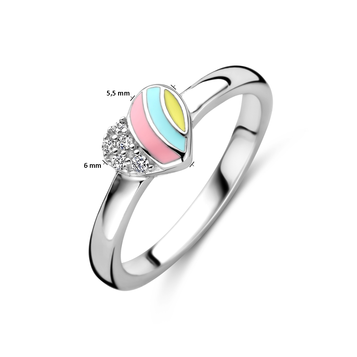 Gerhodineerd 925 zilveren ring uitgevoerd met een hart en zirkonia. De ring heeft een afmeting van 5.5x6mm.