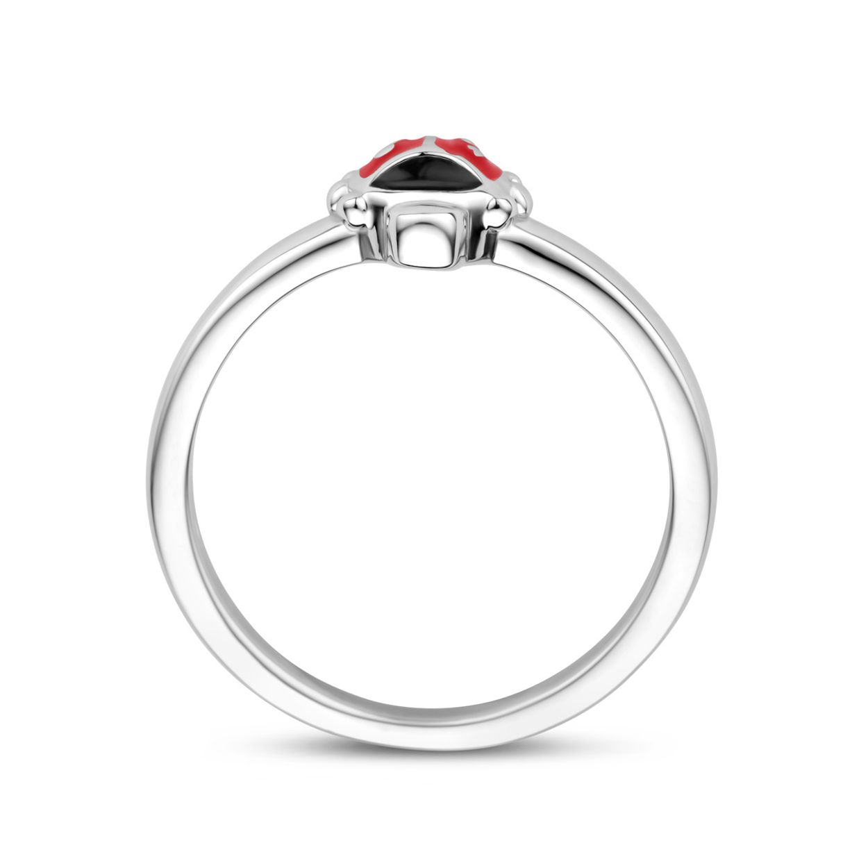 Gerhodineerd 925 zilveren ring uitgevoerd met een lieveheersbeestje. De ring heeft een breedte van 6mm.