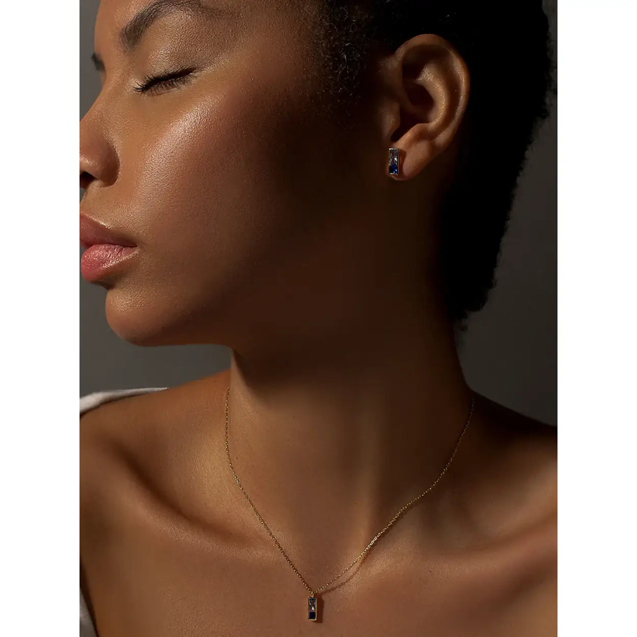 Small earrings with gold plated design blue tones for women. A sophisticated and colorful touch that will not go unnoticed. Small gold-plated silver earrings made up of a square sapphire gemstone and a rectangular blue gemstone. Ideal to wear with the matching necklace, you will fall in love!