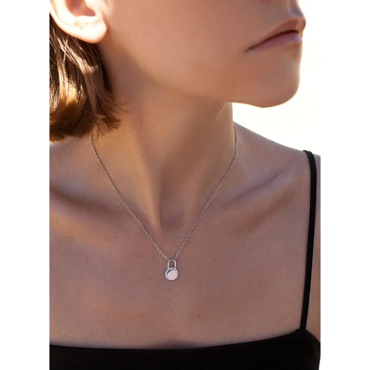 A minimalist and discreet design with which you can accompany many of your looks. Small silver pendants with round padlock design and very small zirconia detail, perfect for you!