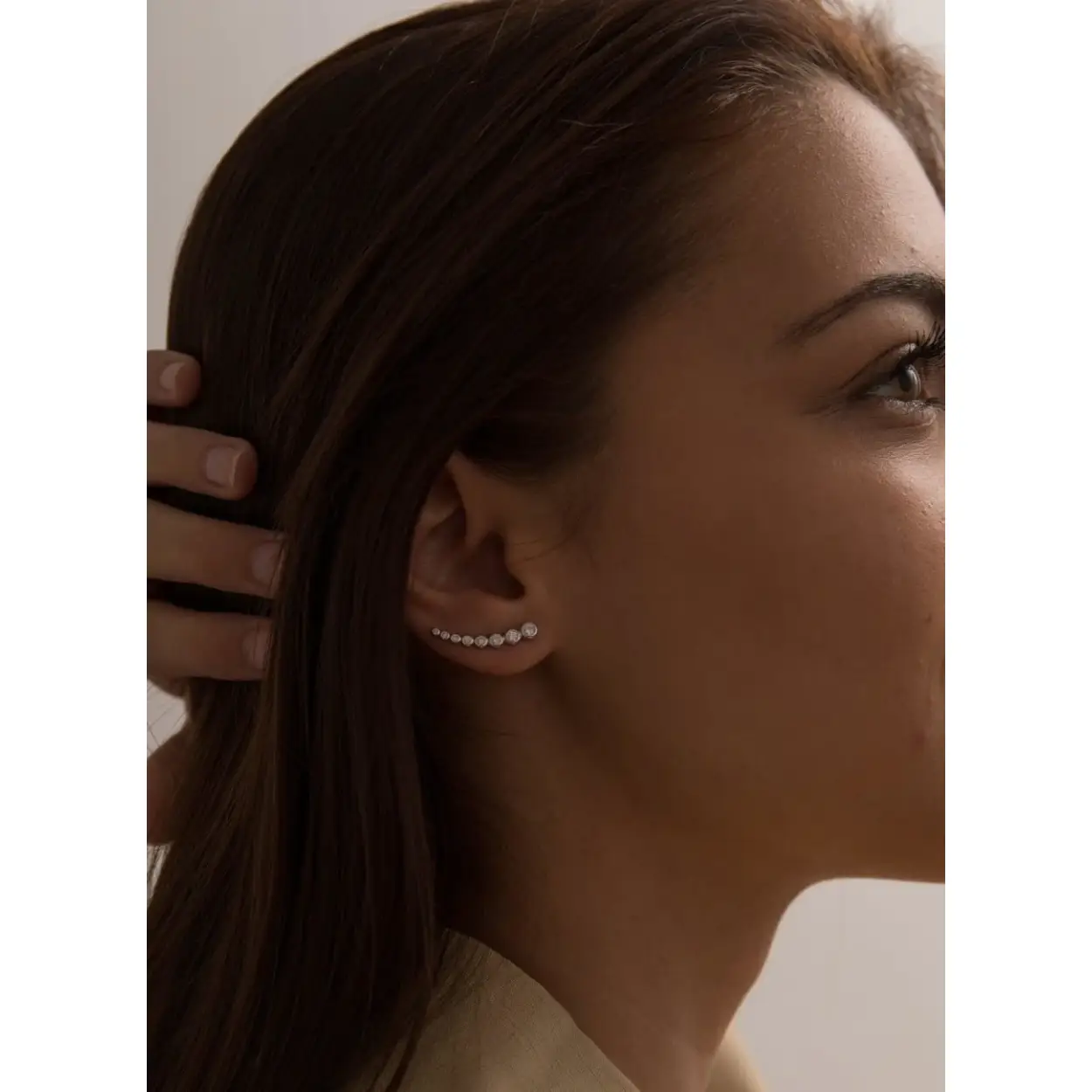 Elegant earrings that will dazzle in your ear. Smooth sterling silver climbing earrings with a crescent linear design made up of eight brilliant zirconia set. These modern earrings are worn upwards and fit perfectly to the contour of the earlobe. A must-have accessory for this season, they will look irresistible in combination with the trends of the moment.