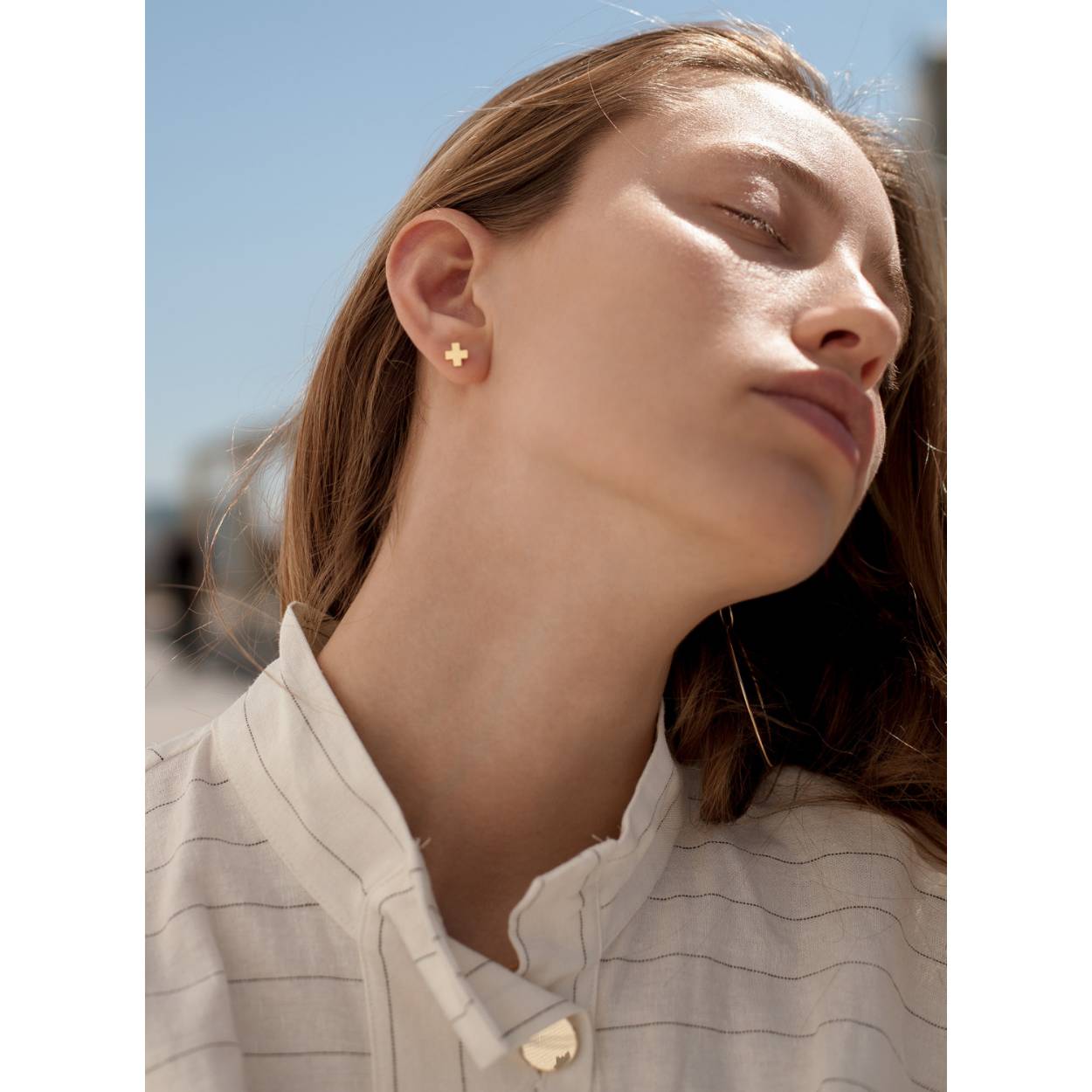 Stud earrings silver for women. Perfect silver earrings to wear in your ear with other types of earrings. Small smooth silver earrings with a gold-plated cross design. With traditional clasp. Basic earrings essential in your jewelry box.