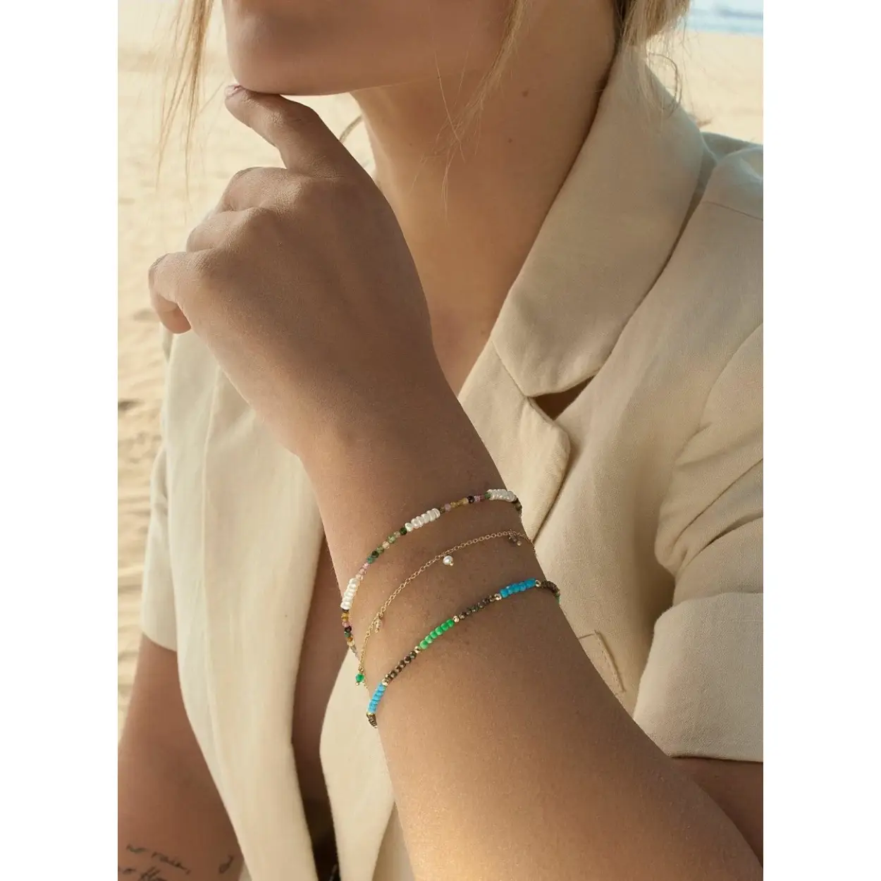 A design like no other. Fine silver bracelets triple design onyx, green aventurine, rose quartz and pearl. Ideal to combine with the matching necklace.