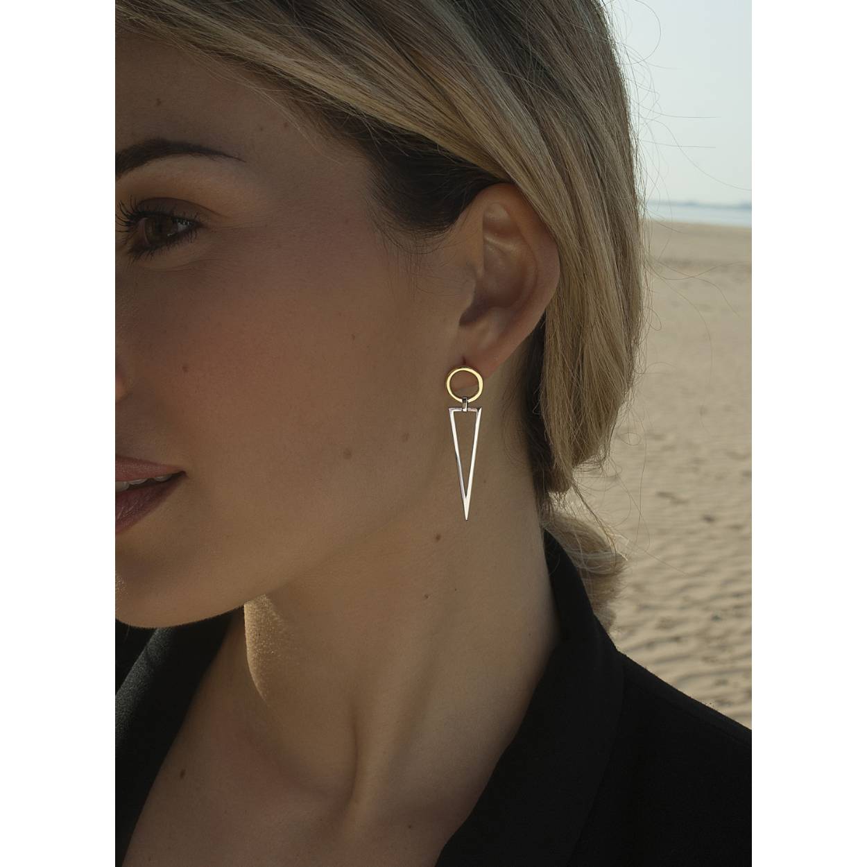 TWO-TONE EARRINGS TRIANGLE AND CIRCLE DESIGN