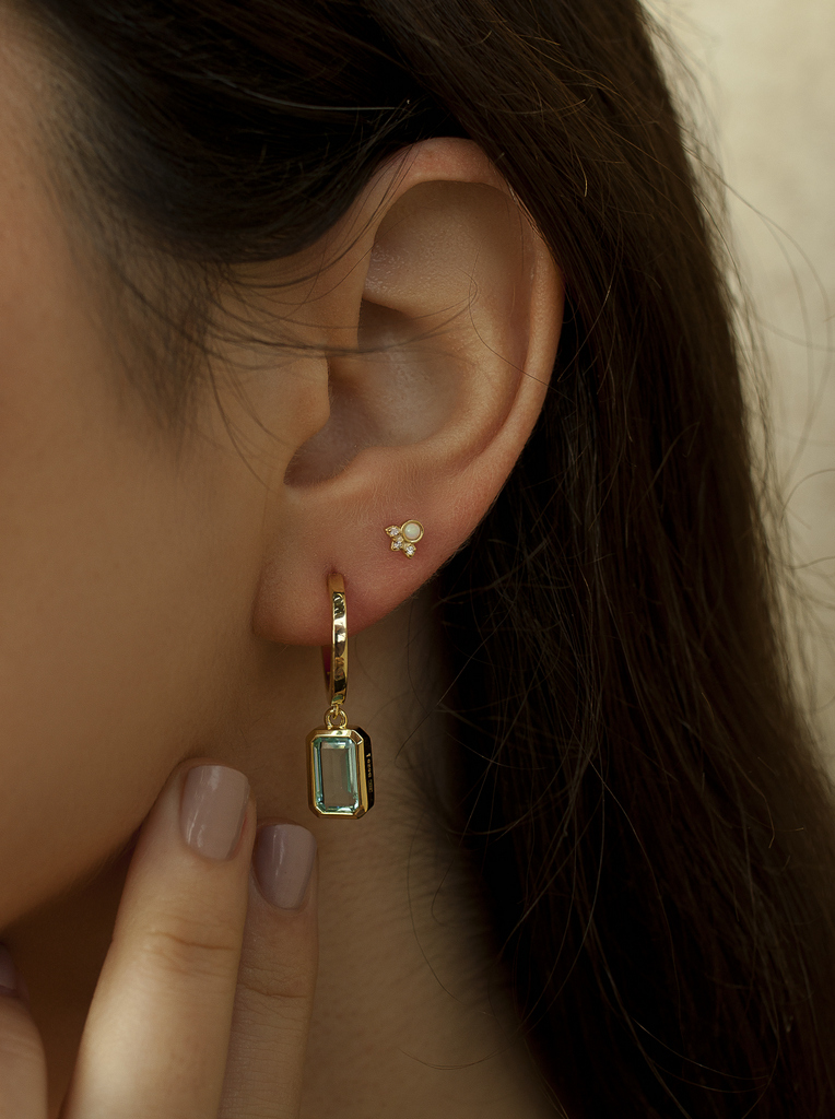 Vergulde piercing van sterling zilver met een ronde opaal en zirkonia. Een verfijnd en stralend ontwerp dat de delicatesse van opaal combineert met de schittering van zirkonia om je stijl te accentueren.