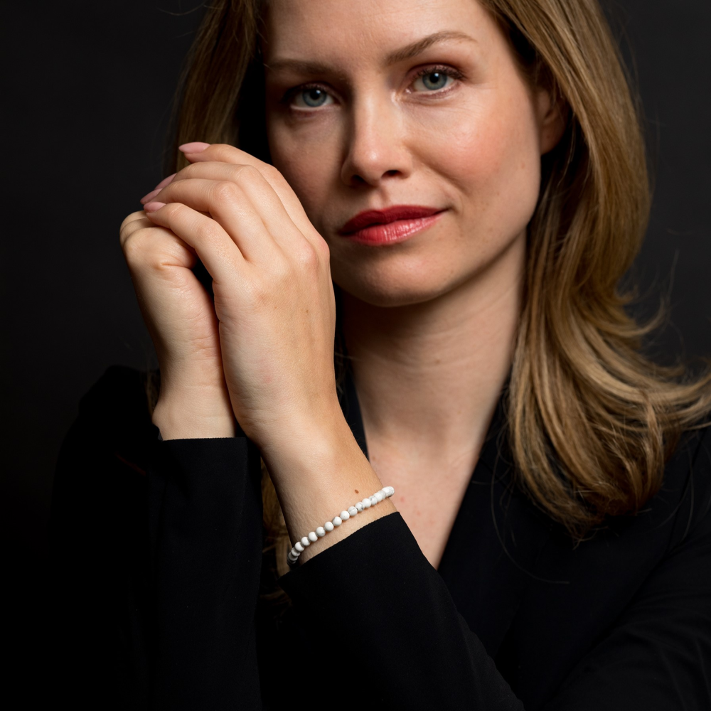 Bead armband, handgemaakt van 4mm witte Howliet stenen met een zilverkleurige sluiting. Het Rebel & Rose sieraad is makkelijk te combineren met andere zilveren, leren of kralenarmbanden.